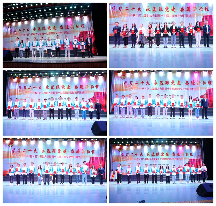 青春逐梦,不负韶华!此次表彰典礼营造了庆祝五四青年节的浓郁氛围,生动展现了工院青年学子拼搏奋斗的精神风貌,激励广大同学以优秀青年为青春榜样,进一步弘扬“五四”精神,学习贯彻党的二十大精神,牢记习近平总书记殷切嘱托,在青春的赛道上奋力奔跑,践行“请党放心,强国有我”的青春誓言;在建设中国特色高水平职业学校中、申报职教本科主动作为,带头践行“五个模范”,团结引导广大青年学子为学校事业高质量发展,和全面建设社会主义现代化国家奉献青春力量,让青春在技能成长、技能报国的火热实践中绽放绚丽之花!