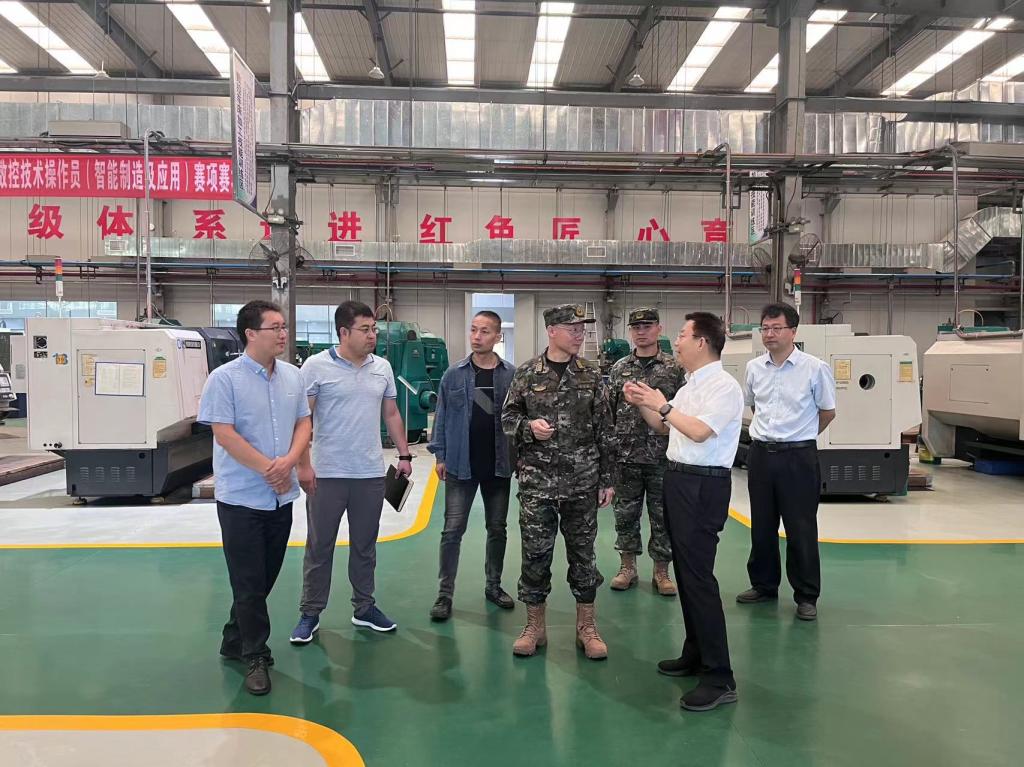 雒金龙政委一行参加我校2023级新生军训汇报表演暨军训表彰总结大会后,参观了我校学马研习·践创空间、智能成型实训基地、先进制造技术工程中心。
