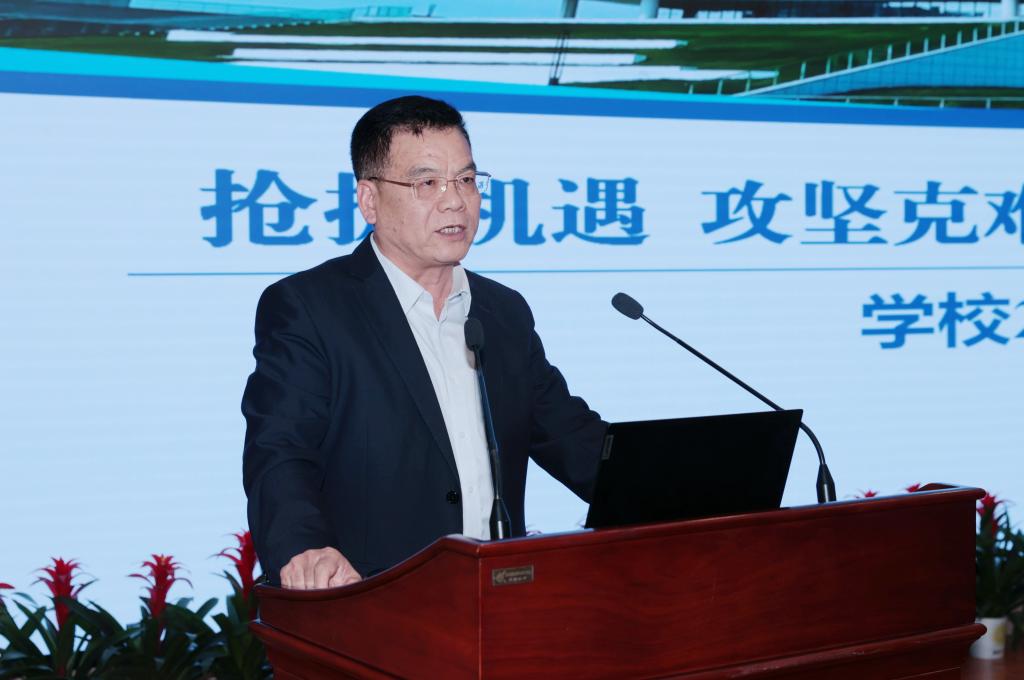 会议指出,2024年是全面落实学校第三次党代会精神和“十四五”事业发展规划的攻坚之年,更是成功申办职业本科,在下一轮国家“双高”遴选中有进位,稳固全国高职院校第一方阵的攻坚之年。今年学校工作的总体要求是:以习近平新时代中国特色社会主义思想为指导,全面贯彻党的二十大精神,坚持把党的领导贯彻到学校改革发展全过程和各方面。落实全国教育工作会议精神,增强职业教育适应性和吸引力,坚持服务国家战略、服务区域经济社会发展、服务学生全面发展。聚焦构建现代职业教育体系“一体两翼五重点”的重大举措和“十一项”重点改革任务,持续按照“强基树标、培优赋能、扶强促弱、特色发展”思路,围绕“强、高、优、特、变”五个字,补缺板、弥短板、锻长板、凝特色,强力实施“五个年”计划,推动学校高质量发展再上新台阶,奋力开启建设“引领改革、支撑发展、中国特色、世界水平”职业技术大学新征程。