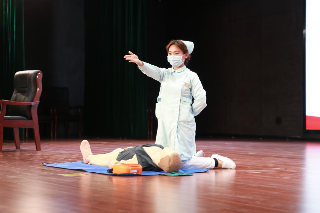 本次培训由三个部分组成,首先陕西中医药大学附属医院急救中心曹蛟博士讲解心肺功能急救方式方法和注意事项,李锦护士进行示范。随后,属地消防所安全管理员任楠班长通过一段火灾事故警示片,讲解电动车停放、充电及灭火注意事项,人员密集场所用气、用电安全防范和高层建筑避险逃生知识。最后进行灭火实操演练,任楠班长就判断初始火情、科学扑救及灭火要领进行讲解示范,并指导参训人员进行灭火器材的操作使用。