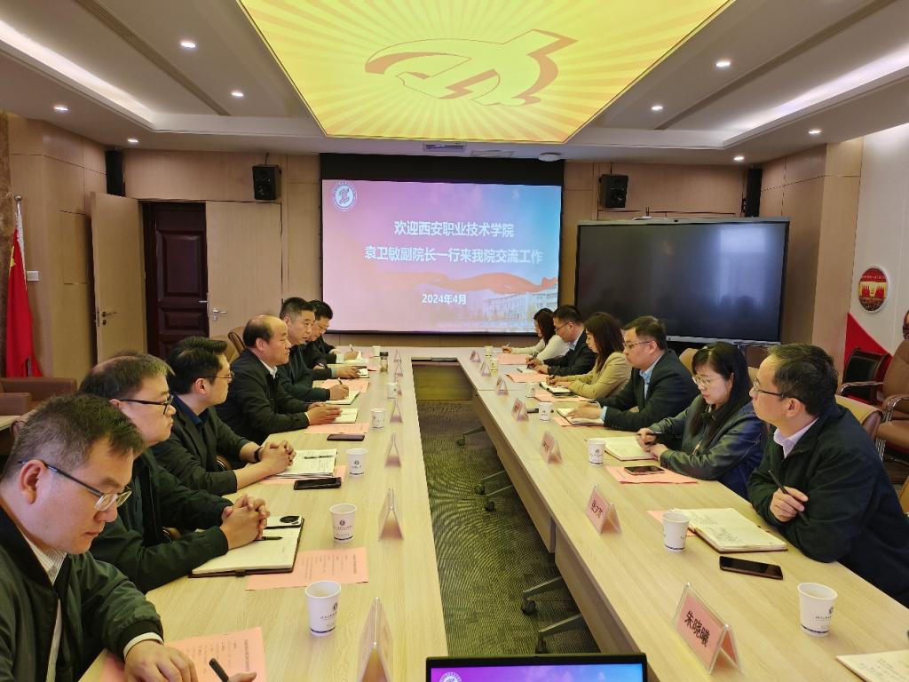 4月10日上午,西安职业技术学院党委委员、副院长袁卫敏一行来我校调研交流。我校副校长梅创社,人事处、校企合作处、信息化与网络安全处等部门负责人陪同座谈,会议由副校长梅创社主持。