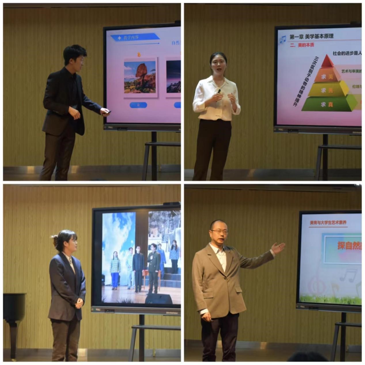 随后,在教学能力展示模块中,教师们分别从如何认识美、欣赏自然美、职业服装美和校园礼仪美、职场礼仪美、成立修身美等内容展示《美育与大学生艺术素养》《大学生礼仪美》课程的教学内容。