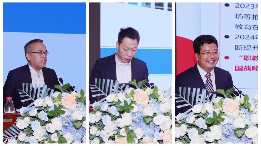 会上,北京精雕科技集团有限公司、西安亿信中久电子信息技术有限公司等企业通过共建、共享、捐赠等方式积极参与我院建设。大会还进行了技术技能创新服务、社会培训服务推介,我校产教协同出海经验介绍,联盟企业代表、获奖教师代表分享了合作感受与育人经验。