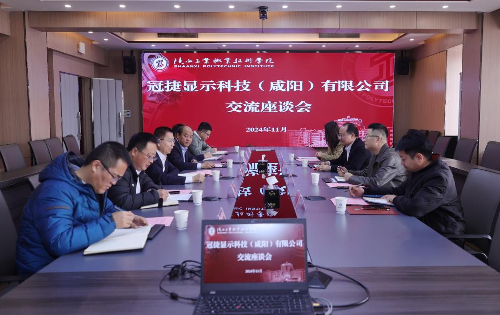 11月26日上午,冠捷显示科技(咸阳)有限公司总经理郑定彬一行4人来我校进行合作交流。校企双方在崇文楼第一会议室举行了座谈会,党委书记惠朝阳、副校长梅创社以及机械工程学院、电气工程学院、航空工程学院、就业指导处相关负责同志参加座谈。座谈会由梅创社副校长主持。