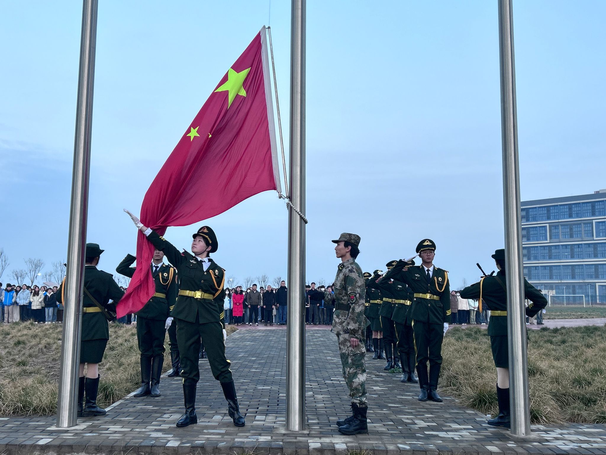 3月2日清晨,迎着初春的第一缕朝阳,我校分别在渭城校区、经开校区同步举行新学期首次“国旗下的成长”主题教育活动。本次活动以“崇德尚技担使命 匠心筑梦新学期”为主题,副校长刘清出席活动。