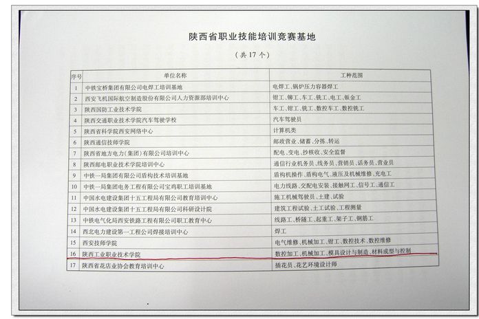 为满足我省经济建设快速发展对高技能人才的需求,提高我省装备制造行业专业技术人才的专业水平,搭建我省装备制造业高技能人才培训和技能竞赛平台,省总工会、科技厅,人社厅此次共确定17所院校为陕西省职业技能培训竞赛基地。