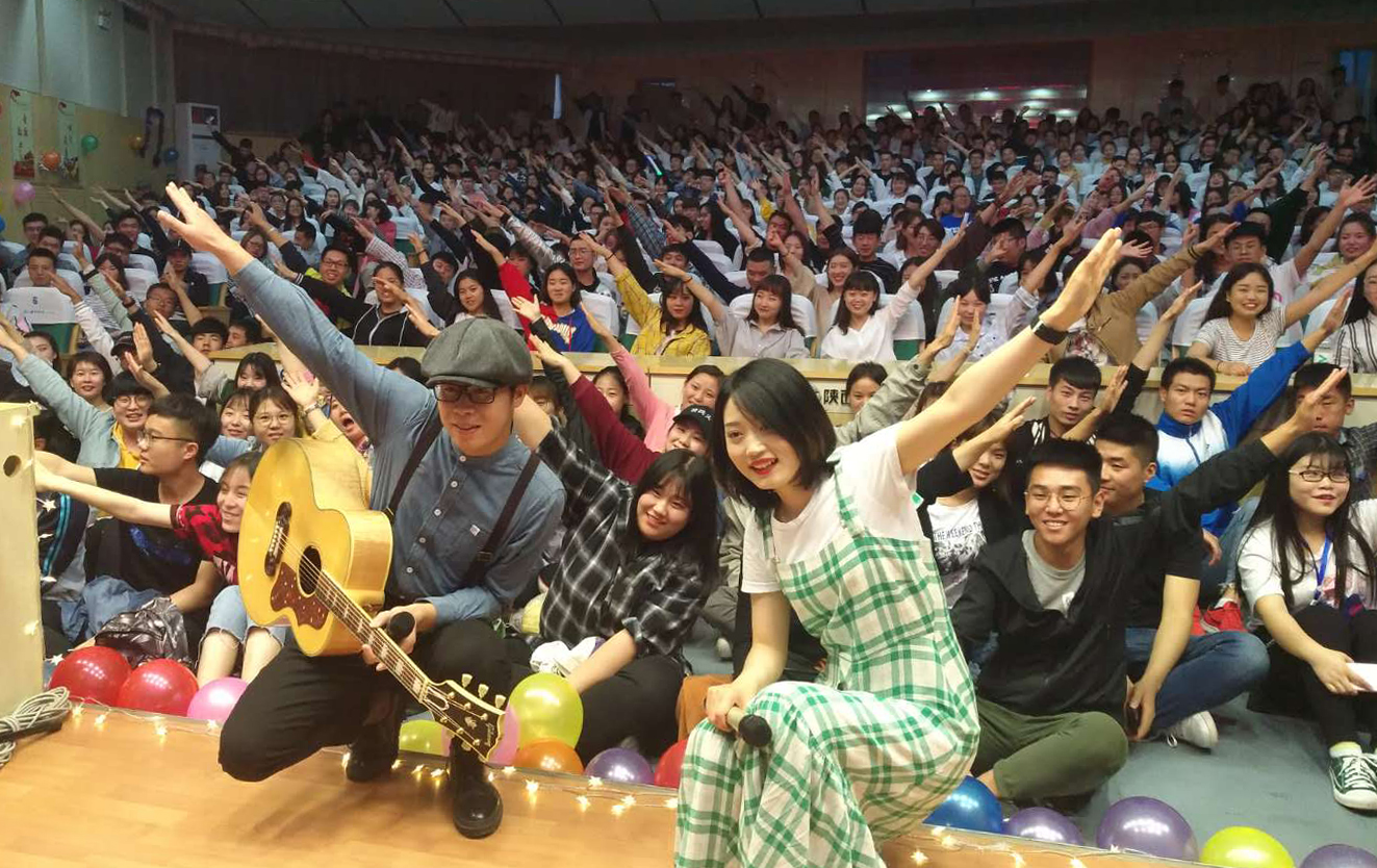 来自安康的歌手徐豆汁(豆汁)为大家现场演唱了《温暖的你》《宝贝,我也是你的天使》,用她独特的嗓音让同学们置身于空灵世界,触碰到内心深处最柔软的地方。另一位歌手陈鹏(蠢子)则伴着吉他,演唱了《无题》《情怀》等,用温暖的歌声与动听的旋律使同学们沉浸其中。他们还与现场师生分享了自己的音乐故事,真情和坚守感染了现场的每一个人。