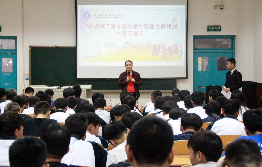 5月10日下午,由就业指导处、团委主办,数控工程学院承办的我院第九届大学生职业生涯规划大赛在崇文西楼开赛。就业指导处处长卢文澈、数控学院党总支书记郝军、各二级学院学工办主任和大赛指导教师及学生代表200余人参加了开赛仪式。