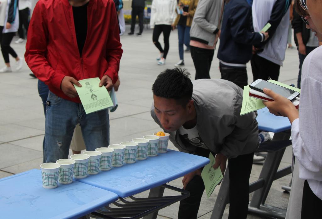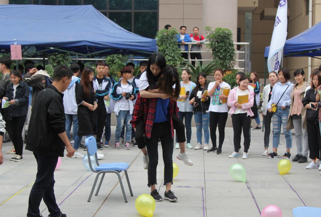活动由你说我猜、极速60秒、坐地起身、瞎子背瘸子、6瓶水的游戏、吹乒乓球、正话反说、找零钱、风火轮、叠报纸等十个心理游戏组成。活动伊始,主持人向同学们详细讲解了“心理素质拓展游园会”的目的、要求以及活动的意义,希望同学们能够放开自我。随后,大家纷纷参与到形式多样的趣味心理游戏中,活动现场气氛热烈,高潮不断,周围的“加油”声此起彼伏,不绝于耳。