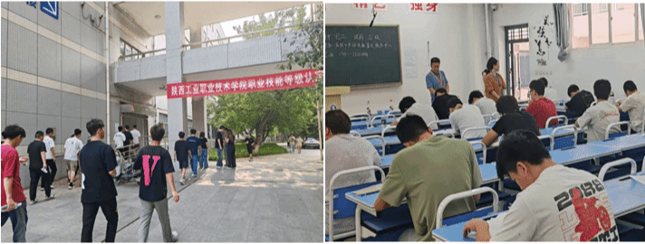 考试当日,考场秩序井然,各项工作有条不紊地推进。咸阳市劳动技能鉴定服务中心副主任张滢淇、科员李新鸽和继续教育与培训学院院长闫军、副院长贾严鹏等人对考场环境、考场秩序、监考教师履职等情况进行了全方位、细致入微的检查。深入了解考试组织工作与考试工种类别后,张主任对本次考试的组织工作给予了高度评价。她着重强调,此次考试规模大,要严格遵循规章制度,确保考试纪律严明、流程规范。通过标准化的考务流程、专业化的监考团队以及规范化的考场管理,保障认定工作公正严谨有序进行。