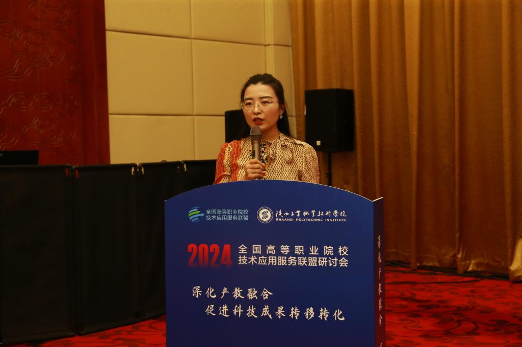 在专家报告环节,中国教育科学研究院职业与继续教育研究所宗诚研究员作了《职业教育科技创新与服务—基于2024质量年度报告的分析》报告,从价值意义、现实样态、客观反思三个方面,分享了职业院校科技创新与服务的现状和趋势,提出下一步发展的思考。陕西省技术转移中心技术市场服务部高飞部长作了《技术合同认定登记实务》报告,从合同的区别、相关政策、认定流程、案例分析四个方面,为与会代表做了技术合同认定登记实务的讲座。西安市中科硬科技创新研究院副院长、西安中科光机投资控股有限公司政研总监赵瑞瑞,作了《硬科技:从实验室到市场—西科控股科技成果转化的探索及实践》报告,结合西科控股科技成果转化的实例,从新质生产力、硬科技投资与成果转化探索两个层面,分享了西科控股作为西安光机所科技成果产业化平台,十几年来探索解决国家科技成果产业化的历程和成果。济宁职业技术学院李中国校长,作了《科教融汇赋能新质生产力的基本逻辑与路径探析》的报告,从新质生产力的内涵解析、科教融汇赋能逻辑、科教融汇赋能路径和实施保障等方面,分析了科教融汇发展路径。我校校长刘永亮教授,作了《高质量视域下产教融合育人模式的思考与探索》报告,提出“一校一策”的解答方案,分享了陕西工院“一院一名企”、“一院一品牌”、“一院一模式”的实践探索。重庆工业职业技术学院副校长许磊、西北工业大学科学技术研究院产学研办公室主任李源、陕西空天动力研究院副院长赵忠双,还分别作了《科教融汇的内涵与路径》、《西工大科技成果转化“三项改革”的实践探索》和《陕西空天动力研究院科技成果转化实践探索》的报告。整场报告内容丰富,专家们深刻的分析、独到的见解、风趣的语言,赢得在座代表的认可与掌声。