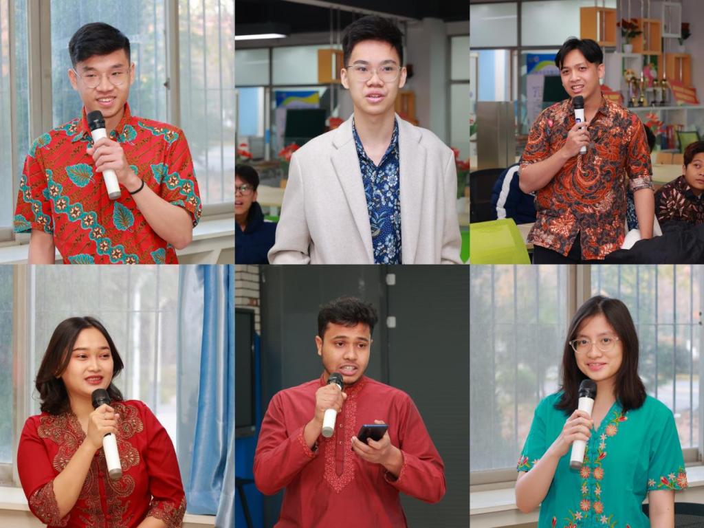 第三环节“茶歇交流”茶歇交流由孟加拉留学生浩天主持,大家纷纷挑选各自喜爱的蛋糕甜点,互相交流心得,气氛轻松融洽。来自孟加拉的留学生明亮表示:“感谢陕西工院让我有机会来到中国历史名城——咸阳学习。毕业后会我回到自己的国家工作,努力成为中孟关系的‘建设者和传播者’。”来自印尼的留学生戴文雪表示:“我们会珍惜在校园里学习和生活的时光,未来向世界讲好工院故事、中国故事。”