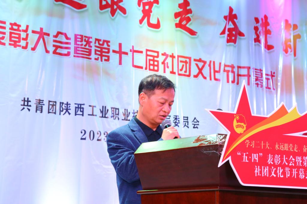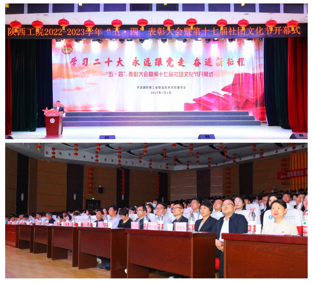 5月4日下午,我校“学习二十大 永远跟党走 奋进新征程”五·四表彰大会暨第十七届社团文化节开幕式于渭城校区明德堂举行,同时在经开校区在图文信息(二)设立分会场。党委副书记贺天柱出席,党委组织部、宣传部、学工部、马克思主义学院、就业处、校团委等部门相关负责同志,各二级学院党总支书记、副书记,团总支书记以及师生代表参加了现场会议,万余名师生通过线上直播形式参与了这场青春盛会。会议由团委书记赵双军主持。