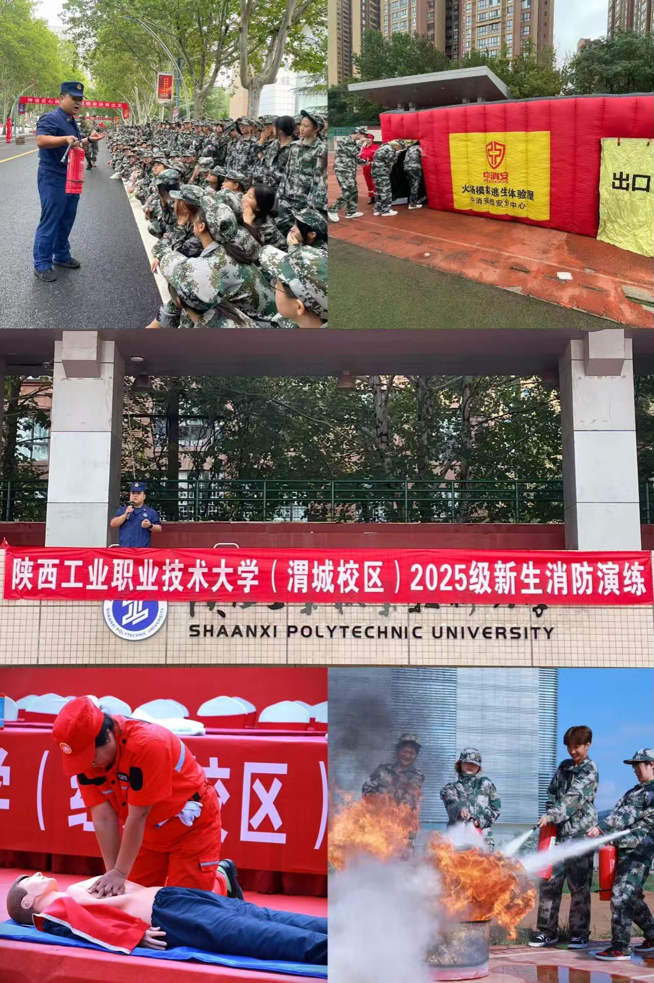 为切实增强2025级新生的消防安全意识和应急避险能力,筑牢校园安全“防火墙”, 我校于9月19日分别在渭城、经开校区举办新生消防知识培训及灭火逃生演练活动。