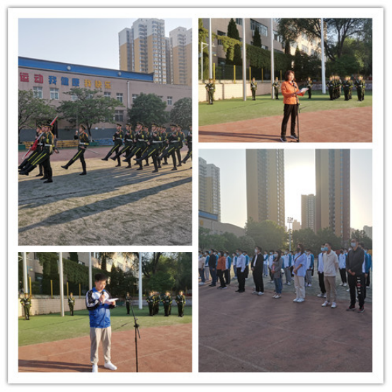 6点50分升旗仪式正式开始。国旗护卫队步伐坚定,护送国旗抵达升旗台。伴随着庄严的《义勇军进行曲》,五星红旗冉冉升起,全体师生肃立凝视,高唱国歌。随后,党总支副书记郭旭华结合本次主题提出大学生应该做好“守护者”“修行者”“律己者”,并勉励广大学子在今后的学习生活中,对照榜样,坚定信念,提高本领,开拓创新,勇于实践,以工匠精神为依托,积极学习、增强技能,在新时代新征程中留下青春奋斗的鲜明印记。他结合近期学校疫情防控要求及卫生安全月等要求,希望同学们能够以身作则,争做榜样。最后,机制2008班学生辛曙作为学生代表发言,他讲述了机械学院毕业生何小虎的事迹,号召青年学子能够“做一个汲取榜样力量的人”“做一个拥有家国情怀的人”“做一个具有责任担当的人”“做一个树立远大目标的人”,树立崇高理想,时刻铭记学生之责,不断提升自身综合素质。