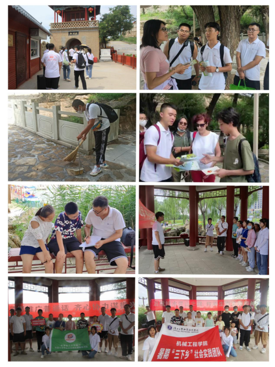红石峡位于中国历史文化名城——榆林城北三公里处, 因山皆红石得名,又因山势雄伟,两峡高耸亦称“雄石峡”。随着景区的游客越来越多,随之而来的还有许多白色垃圾、游客们丢弃的塑料瓶和随处可见的烟头等。实践团成员们提前准备好垃圾袋与清扫工具,刚到达景区内,便分组行动,开始捡拾垃圾和清扫卫生。同学们清理的同时,还在景区内向游客们发放环保及推普传单进行讲解与宣传。在宣传普通话的过程中,国外游客也参与了进来,实践团成员希望能够通过宣传普通话这样的行动让他们能够更加的了解中国文化,说好中国话。