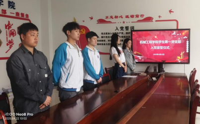 4月22日上午、4月23日晚上,根据2022级学生已离校参加岗位实习的实际,机械工程学院学生第一党支部分批次组织2022级5名新党员参加入党宣誓仪式,仪式由机械工程学院学生第一党支部书记张亦乐主持,支部全体党员、新发展党员及入党积极分子代表参加。