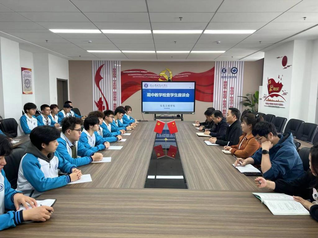 为全面了解学院各专业教学过程中的实际情况,更好了解学生的学习和生活,倾听学生的心声,加强师生交流与沟通,根据学校工作安排,5月10日下午,信息学院在崇理楼c801召开2022-2023学年第二学期期中教学检查学生座谈会。学工办主任穆昌、教学办主任宋承继、各年级各专业辅导员、教师代表、学生代表30余人参加了会议。