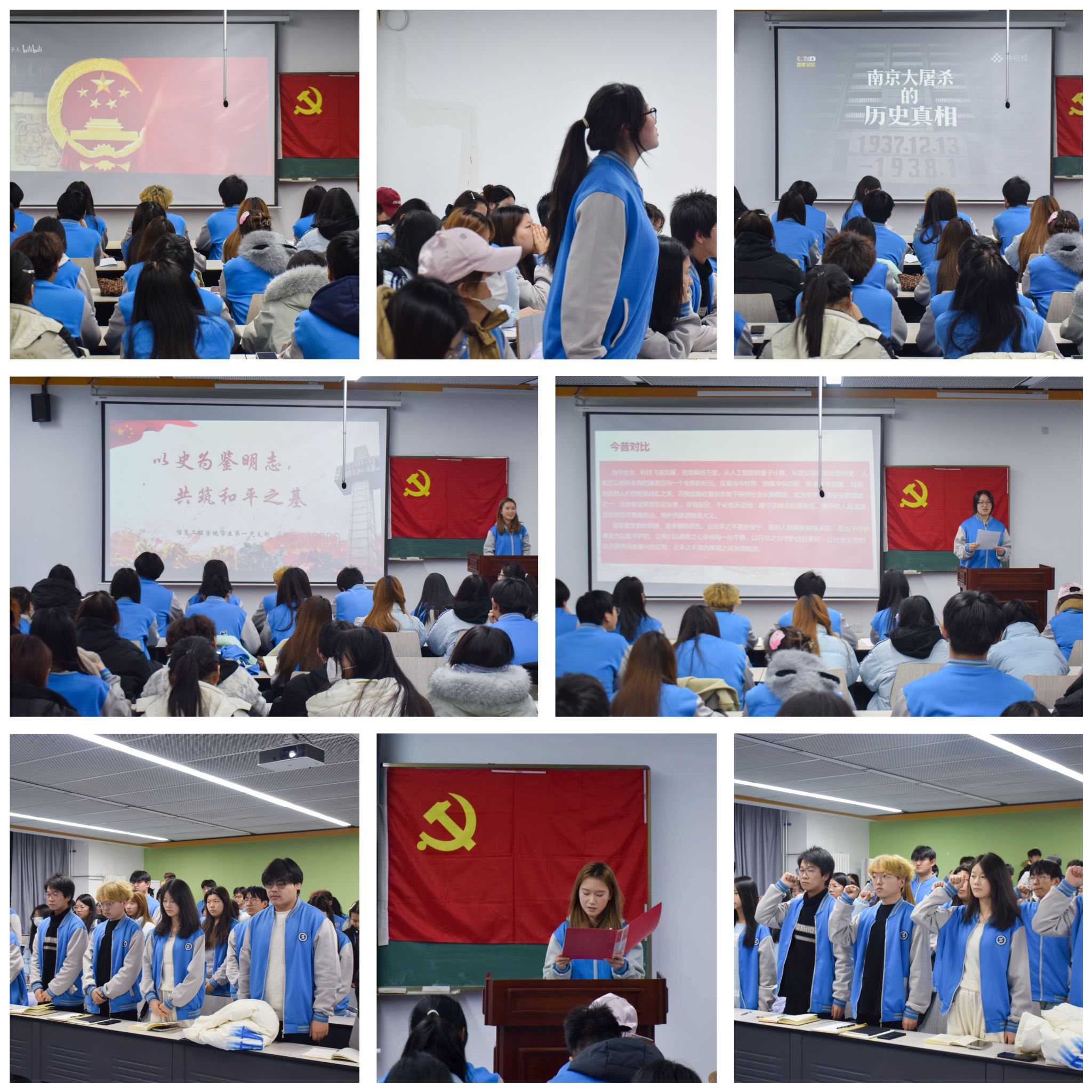 为感悟家国情怀,弘扬伟大抗战精神,引导青年党员在历史回望中汲取前行力量,12月11日,信息工程学院学生第一党支部在崇理E103开展了“以史为鉴明志,共筑和平之基”主题党日活动。党员、发展对象、积极分子100余人参加了本次活动。