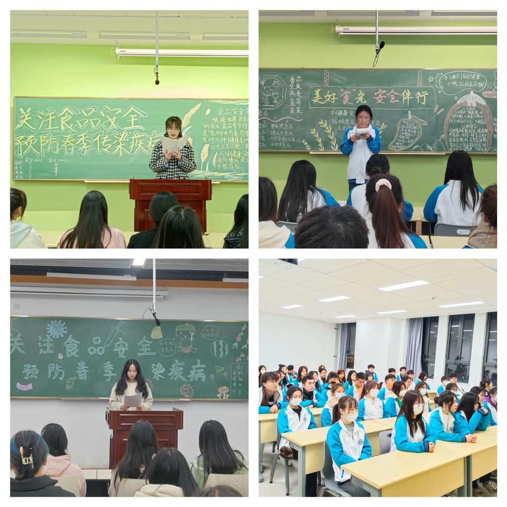 近期,学校周边的流动摊贩“死灰复燃”,加之春季又是各类病菌滋生,流行性感冒、诺如病毒等呼吸道、肠道传染病和食物中毒的高发季节,为了确保学生身体健康,强化学生食品安全意识,防止食物中毒和传染性疾病在校园蔓延,3月2日晚,财经与旅游学院团总支组织大一、大二各班,在晚自习教室开展了“关注食品安全、预防春季传染疾病”主题教育班会。