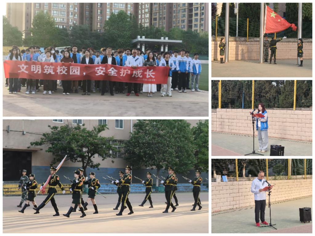 为深入培育校园文明风尚,强化安全意识,5月19日清晨,汽车工程学院在学校操场隆重举行“国旗下的成长”之“文明筑校园,安全护成长”主题教育活动。汽车工程学院党总支书记高亚宁、学工办主任胡瑞霞、全体辅导员、2024级学生代表及学生会干部共同参加了此次活动。