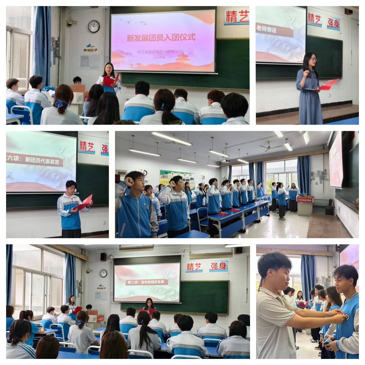在优秀共青团员代表贺雅婷同学的领誓下,全体新发展共青团员庄严起立,右手握拳举过右肩,以饱满的热情宣读入团誓词,铿锵有力的誓言响彻会场,彰显着共青团员们坚定的理想信念与青春力量。共青团员代表潘朝勃同学分享了自己作为团员的成长感悟,鼓励共青团员传承红色基因,以实际行动践行共青团员使命。新发展共青团员代表常懿同学则表达了加入共青团的自豪与决心,承诺将以共青团员标准严格要求自己,用奋斗书写青春篇章。