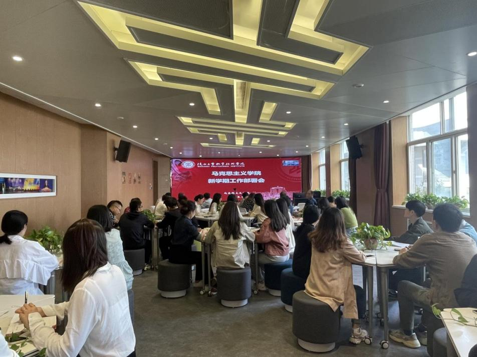 会上,王艳副院长首先总结回顾了暑期马院所完成的各项重大工作。她指出,暑假期间,马院先后高质量完成了暑期主题实践研修、全省高职院校高质量发展校级领导研修班思政观摩课、暑期“三下乡”等多项重大工作,全体教师克服困难、加班加点,有力展现了马院人的精神风貌。随后,王艳副院长就近期线上授课、开学第一课、大学生讲思政课作品报送、思政课教师“大练兵”打磨、重点马院培育单位建设、“大思政课”建设等相关工作做了全面安排部署,确保了开学收心和工作衔接。针对本学期初站讲台青年教师较多的情况,王艳副院长强调全体教师特别是青年教师要严格遵守学校教学工作的各项规定,心怀敬畏之心,扎实做好备课,务必确保新学期各项教学工作有序推进。