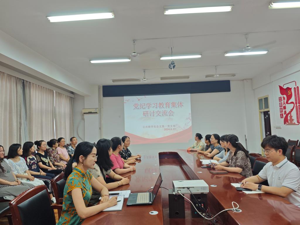6月17日下午,公共教学党总支第一党支部在崇文楼A501会议室召开党纪学习教育集体研讨交流会。会议由党支部书记韩畅主持,支部全体党员参加了会议。